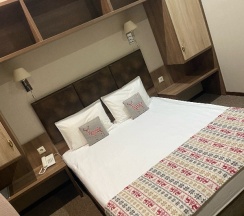 Отдыхали в январе , бронь делали за ранее (2,5 месяца) по приезду нас сразу заселили в номера . Все понравилось есть парковка для авто на территории, первое впечатление очень красивый интерьер , все чисто и красиво . Номера достойные , есть место для вещей , в номере просторно ,уютно . Есть холодильник, чайник , вода , телевизор, интернет, ванные принадлежности. Ежедневно персонал меняет полотенца, приносят свежую воду, убирают мусор .
