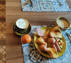 Завтраки, которые входят в проживание ох, самое любимое ❤️ за такую цену, просто подарок. Шведский стол, все очень вкусно, больше всего понравились салаты, лакумы(пампушки такие) , запеканка, сочник творожный, чизкейк. Там есть и каши, хлопья, но Обычно мы завтракали глазуньей с сосиской и салатики, и выпечка разная, лепешки и тд. Особенно понравилась в ресторане девушка Салиба, больше всего с ней взаимодействовали, она по все видимости не официант, как я сначала думала, а может менеджер или админ. Будем рады если руководство её наградит за добросовестную работу, а так же поваров. Ещё понравилась сыну лошадка-качалка деревянная перед входом в ресторан, красивая)