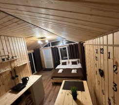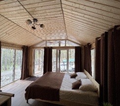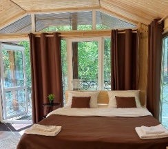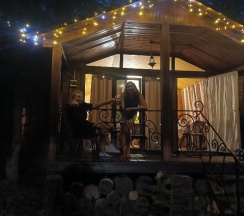 Остались очень приятные и тёплые воспоминания. Понравилась территория ,с огромной территорией отдыха:кровати-качели на цепях,подвешанные кресла.Были очень приятны удивлены,что на базе есть караоке.Петь песни было одно удовольствие.В домиках уютно, пахнет деревом и чистотой.Есть баня с чанном.