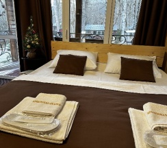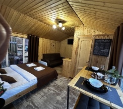 Уехали от жары под 40 градусов в поисках прохлады и спокойного отдыха. В "Архызской сказке" нашли и прохладу, и уютный домик в лесу среди мощных деревьев, и гостеприимных дружелюбных людей, воплощающих эту сказку в жизнь каждый день, за что им огромная благодарность! Домики оснащены всем необходимым для приготовления и приема пищи и для комфортной жизни на природе (это ли не мечта?). И даже мангал есть у каждого домика! На территории есть качели, батут, теннисный стол, баня, парковка для каждого домика! Были мы в первый, но, уверена, не в последний раз ❤️ Огромная благодарность всему персоналу за радушный прием, чистоту в номере и комфорт!