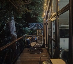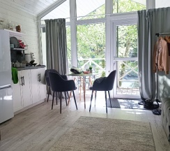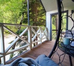 Великолепное место для отдыха от суеты, работы и хлопот. Место одновременно уединенное и оборудованное. С виду небольшие домики, а внутри полноценно оборудованное жилище, где можно и приготовить пищу, и заварить чаёк с вареньем (которое в подарок предоставляют владельцы), и принять горячий душ. На моем опыте это первое место, где все продумано и придраться не к чему: чисто, ухожено, техника не самая дешевая "лишь бы была", а видно, что вложились с умом, предусмотрели всё. Очень понравилось отдыхать на веранде в кресле и невероятно приятная постель с комфортным матрацем и подушками - отдых 100%-ный, сон чудесный. Очень хочется вернуться. Благодарю владельца (-ев) за то, что следят и устраняют дефекты, а не пускают домики на самотек, мол и так люди приедут, и так стерпят, и так сойдет. Поддерживать такое место в порядке и держать планку - очень важно, спасибо вам большое!