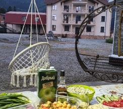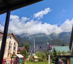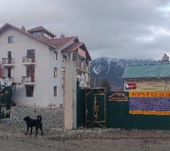 Хозяйка Роза очень доброжелательная и гостеприимная. В номере есть фен, по 2 полотенца, шампунь, жидкое мыло. Хороший напор воды. Комфортные матрацы и приятное белоснежное постельное белье. 2 и 3 этажи работают только 2 года, все в отличном состоянии. За мягкое изголовье кровати отдельное спасибо! На территории есть кафе с демократичными ценами, где мы завтракали и ужинали, оплата наличными или переводом. В номере очень тепло, батарею даже не пришлось включать. В цокольном этаже есть комната для хранения снаряги, а также кухня с посудой, чайником, холодильником. А какой красивый забор! Если вы своим ходом, то в 2-4 минутах пешком есть остановка, откуда автобусы каждые 20 мин могут вам отвезти на склон. Время в пути 15 мин. Рядом есть продуктовые магазины.