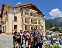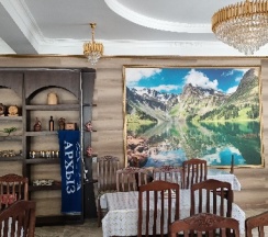Мы приезжали группой из 29 человек на выходные 12-13 октября 2024 года. Всех разместили по номерам разной вместимости, которые были заранее заказаны. 2-х, 3-х, 4-х местные. На разных этажах. Номера и Гостиница чистые, ухоженные. Имеется фен, телевизор, платяной шкаф, столик, электрочайник. (Сплитов не было, но они нам осенью и не понадобились.) В некоторых есть балкон, но это не принципиально: красивые виды повсюду, куда ни глянь. Хозяйка гостиницы Роза заботливо протопила помещения, т.к. ночами было прохладно. Архыз окружён горами со всех сторон. Гостиница удобно расположена на тихой улице, которая выходит на главную шумную ул. Ленина. Двор просторный, ухоженный. Свободно поместится любая машина и даже несколько автобусов. В подвальном этаже гостиницы есть кухня. Там холодильник, посуда, кухонные принадлежности, две мойки и столы для приема пищи. На этажах имеются общие холодильники (но у нас на 3-м не было) В номерах нет холодильников - это огорчит любителей пива )). В гостинице ииеется Вай-фай. Горячая вода круглосуточно. Тишина, чистый воздух. К отелю примыкает кафе, но в тот период оно не работало. Это вообще не проблема - на улице Имеется несколько кафе. Ближайшее "У Лауры" - в 50 метрах, далее "Чайхана", "Узум"(не работал), "У мишек", "Архызские каникулы "....И это не все. Дальше мы не ходили, питались в ближайших. Еда вкусная, цены обычные кафешные, недёшево. У Лауры небольшое тихое кафе. Чайхана крупнее и посетителей больше. Шурпа в Чайхане "не фонтан" (небольшая косточка с мясом и недоваренный картофель), всё остальное понравилось. Если пройти примерно 100 метров и повернуть на местный "Бродвей" со всех сторон вас окружат кафешки, мини-отели и многочисленные пункты проката мототехники. Любителей шашлыка из свинины огорчу: этого продукта вы там не найдёте ни в каком виде. Привозите с собой, если живёте в соседних регионах. Рекомендую купить айран. Он продаётся в