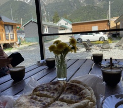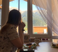 Спокойствие и тишина окрестностей позволили нам полностью расслабиться. Мы наслаждались утренними прогулками и вечерними посиделками с видами на горы.