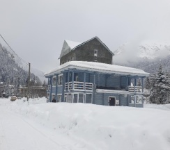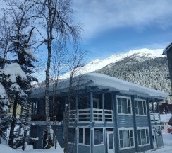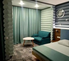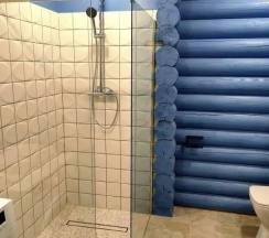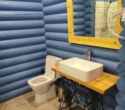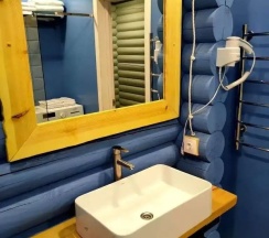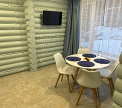 Идеальное место для семейного комфортного отдыха. Продумано до мелочей, всё есть : большой холодильник, стир.машинка, фен, кухня со всеми приборами и посудой, балкон со столиком, за штопор отдельное спасибо. Хороший интернет без пароля. Удачное расположение на краю поселка. Дорога тупик, поэтому нет машин и пыли. Но есть небольшие нюансы. Дом из бревен, но слышимость очень хорошая. ТВ каналов только 20 и иногда выключается передача на секунд 10-30. Лестница на 2 этаж скрепит, особенно это слышно ночью и мешает другим. И соответственно, если захочется в туалет ночью, то это целая история. Но это все мелочи. Номер на 5+. Очень расстроил сам поселок. Одна большая стройка, пыль, грязь кругом и повсюду. Напоминает сочинскую стройку перед олимпиадой. Только здесь не понятно, когда она закончится. Сегодня 18.08.2023. Пишу прямо из номера. Здесь по 21.08. Если есть вопросы, пишите, пока на месте.