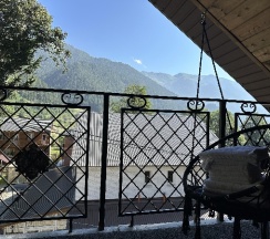 Гостеприимство на уровне, виды идеальные, территория большая с мангальной зоной, парковкой и беседками, террасы с подвесными креслами. Все необходимое есть в шаговой доступности от отеля. Единственный минус, слышно соседей, особенно с детьми