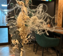 Есть скирум, сушилка для ботинок, но спускаться нужно по крутой лестнице, противоскользящего покрытия на ступенях и кафельном полу нет, снова оч. скользко, мест, где можно сесть и снять ботинки нет (один пуфик на скирум). Многие снимают ботинки у входа перед ресепшен стоя, тоже лавочек нет (два кресла на всех, да и те стоят в углу, не удобно). При этом в "час пик" пока гости не разуются, войти в отель очень сложно, просто входную дверь не откроешь.
