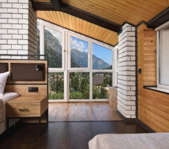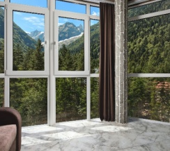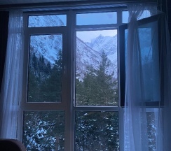 Вид из номера люкс с застеклённой веранды просто шикарный. Есть лифт, правда только до 5 этажа далее до 7 этажа пешком. В номере бельё, полотенца, халаты белые свежие чистые. В номере есть холодильник, чайник, вода, пакетики чая, кофе, сахара. В нашем номере убрались на следующий день пока мы были в горах.