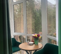 Отдыхали с 5.09-8.09 первый раз в Домбае. Что хочется сказать об отеле! Отель расположен около леса и реки Теберды, тихо спокойно , а самое главное красиво! Все в шаговой доступности канатки, эко тропа (обязательно имейте при себе паспорт!) , центр, рынок. Если бы можно было поставить 10 звезд, я бы поставила 100/10. Девушки на ресепшене просто милейшие, все расскажут , объяснят. Ресторан- парни официанты, управляющий тоже замечательные люди , мастера чистоты- феи чистоты! Каждый день уборка номера, смена полотенец и халатов, я была приятно удивлена! Мужчина работающий в бассейне тоже заслуживает уважения! Благодарим весь персонал отеля🙏🏼♥️ встретили нас с теплом и улыбкой и проводили так же с теплом