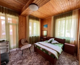 Отличное место для отдыха. Находится рядом с туристическим центром и в тоже время чуть в стороне чтобы никто не мешал. На территории парковка для авто и беседка на берегу реки с мангалом. На первом этаже Хол с рабочим камином и кухней. Номера как на фото, есть всё необходимое даже чай с сахаром. В одном из номеров так же есть рабочий камин. Мы жили в номере с красивым видом на горы. В каждое окно отличный вид плюс балкон. На полах везде лежат ковры. Хозяева добрейшие люди. Угощали нас хычинами. Все возникающие вопросы решались без проблем. В гостях у них мы узнали что такое кавказское гостеприимство.