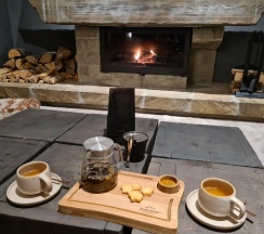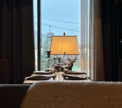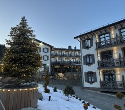 + интерьер: швейцарский дизайн отеля в целом, высокие потолки в холле ресепшена и готические люстры, большой камин добавлял уюта с устеленной шерстью подле него, новые номера, запах дерева в номере помню досипор), уют в студийном номере с видом на подъёмник в 70-100 метрах от посадки, который окружён высокими снежными елями