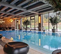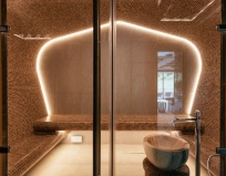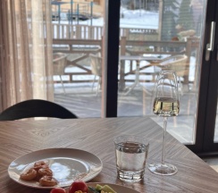 + spa: банный комплекс - сухая, влажная, хамам расслабляли тело, усиливая процесс отдыха). Бассейн около 15 на 30 метров, с остеклёнными стенами и видом на хвойный лес), вдоль бордюров присутствовали разными кнопки для активации функций подводного/надводного массажа. После посещения бассейна заметили балкон и были восторженны присутствием джакузи с видом на горы, падал снег добавляя холода перед погружением в горячую воду...