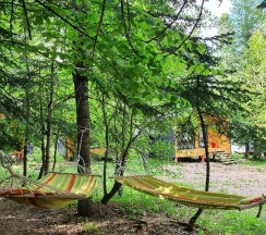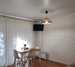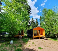 Очень симпатичные домики на лесной полянке, вдалеке от трассы, вокруг лес с земляникой, пение птиц и ночью шуршат ёжики! В доме чисто, кухонная зона с необходимой посудой, телевизор прекрасно показывает, очень хороший вай фай. Панорамные окна с видом на лес, терраса со столиком, где приятно кушать. Есть пледы для прохладных вечеров. Горячая вода без перебоев. Рядом поворот на ферму альпак. Можно с питомцами - нашему псу очень понравилось. Однозначно рекомендуем!!!