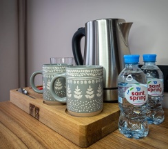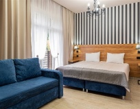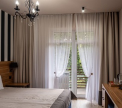 Отличный отель, хорошее тихое место для семейного отдыха, вежливый и обходительный персонал. Чайный набор с большими кружками порадовал, единственное что не хватает это гладильной доски и утюга, а так вполне комфортные номера.