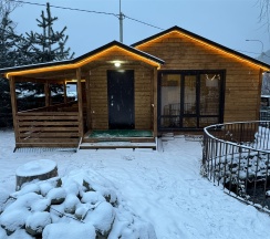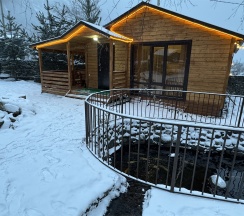 Отдельный уютный домик около пруда с живой форелью и ручьем со всем необходимым для комфортного проживания семьи до 5 человек или уединенного отдыха молодой пары. В доме есть гостевая зона с раздвижным диваном, телевизором, панорамными окнами в пол с видом на пруд, туалет с душевой кабиной, а также своя кухонная зона с плитой, холодильником с морозильной камерой, микроволновкой, чайником и посудой.