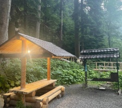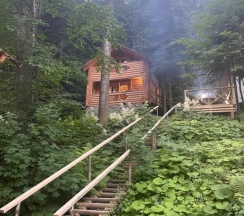 Понравилось: Расположение соответствует названию "Домик в лесу". Домик находится возле речки в лесу. Ночью хорошо засыпать под шум воды. В домике есть все необходимое для отдыха. Красивая посуда, эл.печка, микроволновка. На улице мангальная зона, большая беседка, качели.