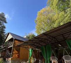 Удобный заезд, не нужно долго искать. Отличное ценовое предложение, для тех, кто не избалован vip услугами. Чистые номера, все удобства, включая холодильник , санузел, телевизор и wi-fi. Во дворе большая беседка со столами, мангальной зоной. Есть где поставить авто. Из окна вид на горы. Что ещё нужно для спокойного семейного отдыха. До склонов трасс 10 минут на авто или такси. На территории также есть дополнительный зал для принятия пищи и для готовки по желанию. Караоке для любителей петь. Были 15-17.12.2023, повезло со снегом, катались. Все понравилось.