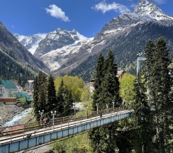 отличный отель! остались только хорошие впечатления) были в мае 2022 с мужем, останавливались в номере на втором этаже с видом на горы. расположение отеля самое выгодное наверное во всем посёлке!
