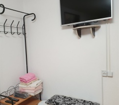 Розетка около кровати.Вешалка для одежды.Сушилка для одежды