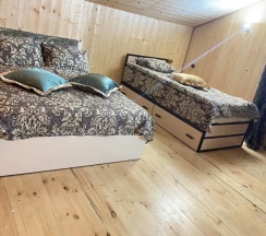 * В спальнях установлены большие двуспальные и полутороспальные кровати из массива дерева с удобными ортопедическими матрасами.