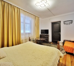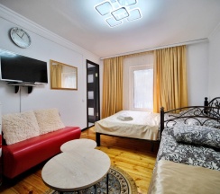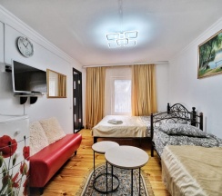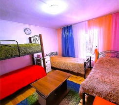 Максимальное количество гостей-3.В небольшом по размеру номере 2х спальная и 1.5 спальная кровать.