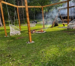 На 1 этаже есть общие столовая и кухня со всей необходимой посудой и оборудованием.Есть зона барбекю,мангалы рядом и беседки.Река на территории.