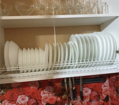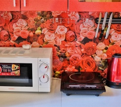 Для приготовления пищи предусмотрена собственная кухня, оборудованная всей необходимой посудой, холодильником, ☕ чайником и микроволновой печью.
