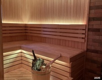 На территории есть Баня. Парилка человека на 4. Стол человек на 8. Душ. Бассейна нет. Баня новая, все свежее, чисто. Была очень сильно натоплена. После двух часов камни ещё горячие остались. Выдали полотенца, шапки, тапочки, чай. Отдельно оплатили веник