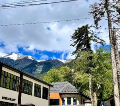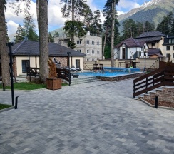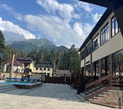 Так же, очень удобно, что на территории есть ресторан кавказской кухни, где просто потрясающе готовят. Рядом есть прокат горнолыжного оборудования, конные прогулки, множество кафе и ресторанов вдоль улицы. От отеля есть трансфер до п. Романтик, 15 минут и вы на месте. С удовольствием вернусь в это место.