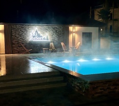 Отличный отель: дизайнерский ремонт, подогреваемый бассейн на улице, возможность посещения сауны и хамама по записи (так же возможно приобретение веников и аромамасел, что сделает пребывание в парной ещё более приятным).