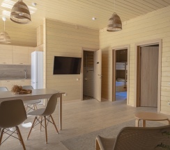 Двухэтажные апартаменты для большой семьи или компании (возможно максимальное размещение 7 взрослых и одного ребенка до 14 лет). Апартаменты оборудованы полноценной кухней с посудомоечной машиной, большой террасой и отдельной зоной барбекю. В домах данного типа предусмотрено два отдельных сан узла для каждого этажа.
