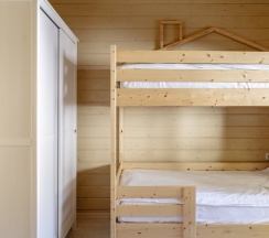 Просторный дом с двумя спальнями для большой семьи или компании (возможно максимальное размещение 6 взрослых и одного ребенка до 14 лет). Каждый дом оборудован полноценной кухней с посудомоечной машиной, большой террасой и отдельной зоной барбекю.
