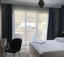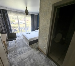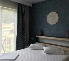 Чистые, уютные номера. В номере есть все необходимое для комфортного отдыха. В каждом номере есть выход на балкон с стульями и столом, даже на первом этаже. Во дворе беседки с мангалом. Персонал очень приветливый, всегда помогут, посоветуют как дешевле съездить на экскурсию, сами могут договориться с трансфером до аэропорта, тоже, чтобы было дешевле. Нам рассказали куда лучше сходить, что посмотреть, где вкусно поесть❤️ Сервис прекрасный. Вид из окна на горы. Отель, в который хочется возвращаться.