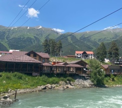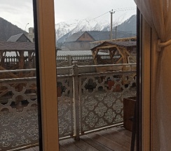 Хорошее месторасположение ( чуть в далеке от дороги, но при этом, в центре посёлка), приятный, доброжелательный персонал-Татьяна и Анзор. Дизайнерский интерьер, в номере удобные матрасы, чайник, оригинальная ванная комната, балкон с видом на горы( без доплаты на вид, как в других отелях), отличный интернет!!! ( в сравнении с другими гостиницами он здесь есть!) и, самое главное, нас здесь приняли с нашим вежливым котиком ( следов пребывания не оставили)