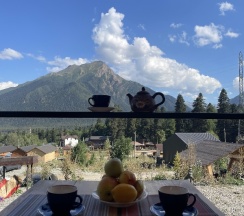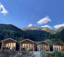 Снимали два домика, один маленький и один со спальней. Вид из окна потрясающий😍парковка есть, находишься в верхней точке над всеми отелями внизу, где сплошная суета, тишина. Мангальные зоны, беседки, дрова. Рядом протекает речушка) Домики изначально сделаны хорошо, но почему 4 звезды, требуют ухода, расшатались дверцы душевой, сломана светильник, не работает полотенцесушитель, в одном домике отсутствует телевизор (на таком отдыхе это не принципиально, но он был в описании), не полная наполняемость полотенцами и халатами, что-то есть чего-то нет, из крана раковины и душа текла черная вода, в унитазе ладно, но как-то умываться, мытья и в чайник набирать такую воду не очень. Из плюса есть доставка питания в домик от хозяев, меню лежит в домике, так же можно выбрать экскурсию, не выходя из домика. А еще домики очень теплые, можно не включать конвекторы, которые очень мощные и обогреют зимой. При перепадах температуры в горах, внутри было очень комфортно. Итог: это место однозначно выбрали бы снова, расположение отличное, хозяева радушные, но домики требуют поддержания и ухода!