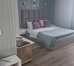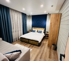 Очень приятный администратор -Камилла. Всё рассказывает, показывает! У нас был номер студио с кухней. Всё выполненно в голубых тонах:посуда, стены, занавески. Тёплый пол в ванной и прихожей-кухне. Переживала, что будет холодно, но было даже жарко, открывали окно) горячая вода, отличный напор, wifi - отлично. На территории мангальная зона, беседки, костровая чаша с креслами в центре. Вечером включается иллюминация, тихо и красиво. В соседнем отеле бассейн и ресторан, но мы не ходили. Кафе недалеко с адекватными ценами. Отдых удался и шашлык пожарили, и у огня костра посидели. Покатались на канатках, поднялись до 2500 м, сходили в Альпака парк там же, покатались на квадроцикле и плюшках в скай Белая.