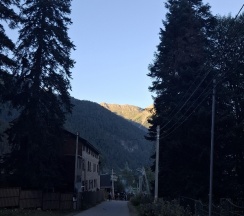 Гостиница расположена в живописном месте. Выходя на веранду невозможно не любоваться высокими соснами, пихтами , елями. Они гордо возвышаются и тянутся вверх, к самому небу. На это можно смотреть бесконечно.