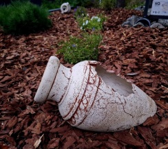 Мне больше понравилось ландшафтное решение : декоративные элементы в виде разбитых кувшинов.