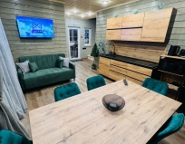 Снимали дом в начале марта.Шесть взрослых и четверо детей.Уютно и дружелюбно, удобные матрасы на кровати, на кухне есть все что нужно для готовки и ужина большой компании.Особенно отмечу красивую посуду.Очень красивая природа вокруг.Большая терраса и мангал с крышей.