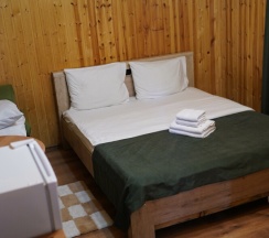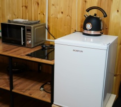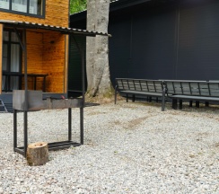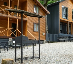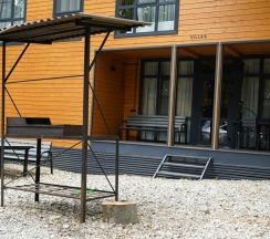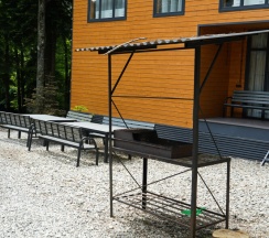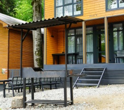 Мы принесли с собой мясо, рыбу, овощи, все приготовили на мангале . Решетки дали бесплатно, угли, розжиг купили. Шел дождь , но это нам не помешало приготовить вкусный ужин под деревом. В домике есть все, для комфортного проживания. С утра снова сходили в бассейн (цена бассейна входит в цену домика), вода была очень теплая, чистая. Очень здорово , что есть такие места в Архызе. Рекомендую. Желаю персоналу здоровья и процветания.