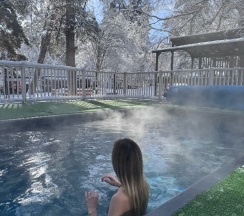 Отличный гостиничный комплекс, отдыхали два дня, горячие бассейны, тэнис, беседки, надувной батут, танц площадка, качели, каждому посетителю банный халат для походов в бассейн, развлечения для детей и все это в лесу. Мы довольны!