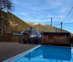 Понравилось: очень приветливый и дружелюбный персонал, чисто, аккуратно, новый и тёплый дом, бассейн с подогревом, баня, мангальная зона, комфортные номера с видом на горы, а Константин бомбически пожарил шашлык!)) фото соответствуют действительности.