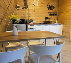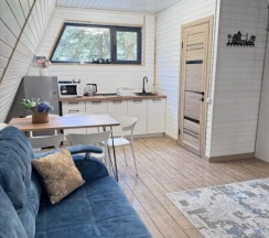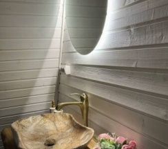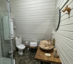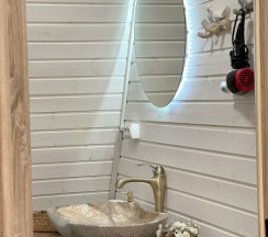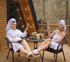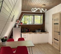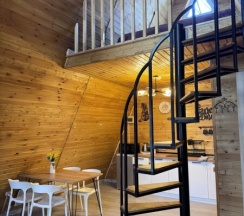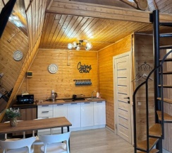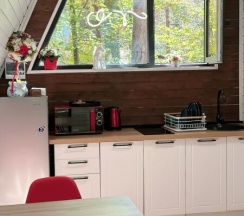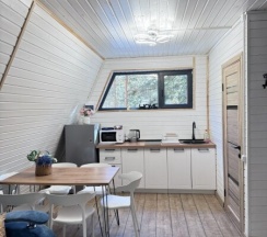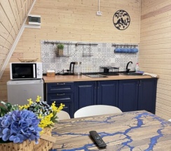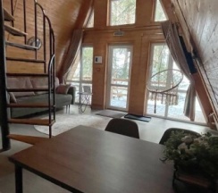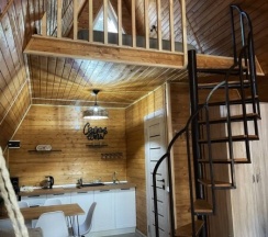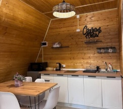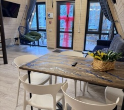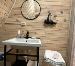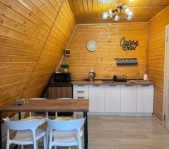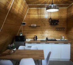 Уютный домик, тишина, свежий воздух и пение птиц!🥰 Сюда хочется возвращаться! Очень приветливый и отзывчивый персонал! Есть все для комфортного проживания! На территории много мангальных зон, есть зона открытого костра, отдельный столик, гамак, качели, баня с чаном. Баня чистая, уютная. Есть чай, банные принадлежности. Потрясающее место! Спасибо за отдых!