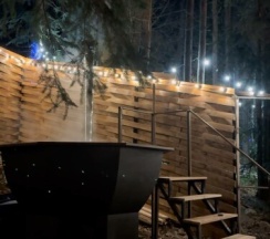 Случайно нашли Отель Пушкин в Инсте и не прогадали. Чистые, симпатичные домики прямо посреди леса, очень уютно и тихо. До поселка 2 км, буквально 3 мин на машине. Брали баню, чан и купель, банная зона особенно нам понравилась. Для детей есть детская площадка, а вечером в Костровой зоне жарили маршмеллоу.