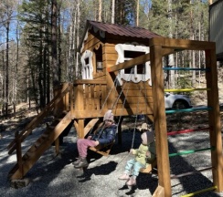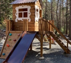 На территории есть небольшая детская площадка, висят гамаки, качели. Беседки, и местечко где можно собраться компанией за костром. Также есть баня на территории за доп плату.