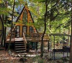 Домики расположены в лесу недалеко от дороги. Шума от дороги не слышно.