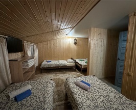 Уютный чистый номер для семьи из пяти человек, есть холодильник, wi-fi. Очень теплый номер.