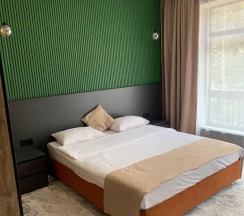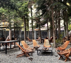Очень хороший отель. Новый, современный, большие номера, вид на горы из номера. Номера полностью оборудованы всем необходимым на 5+. Вечером во дворе можно посидеть в сосновом лесу у костровища - очень красиво. Есть крытая беседка с камином на несколько столов. Большая парковка. Завтраки очень вкусные- помимо стандартных яиц, омлетов, запеканки, каши, сырников и овощей, очень вкусные печеночный торт, торт из кабачковых блинов, рулетики с крабовым салатом в лаваше, много выпечки. Однозначно хочется сюда возвращаться. Спасибо за хороший отдых!