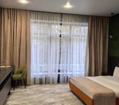 Прекрасное место, очень вежливый персонал, помогали со всеми вопросами, дали по факту выбрать номер какой больше нравятся. Вкусный завтрак, большой выбор. Номер просторный, современный, нареканий никаких нет. Хороший фид из окна, свой балкончик. Красивая территория. Есть беседка и мангальная зона, они включены в стоимость. Вообщем нам понравилось, спасибо большое 💕