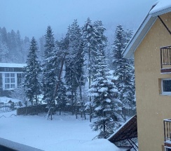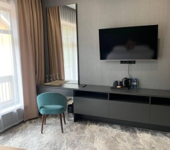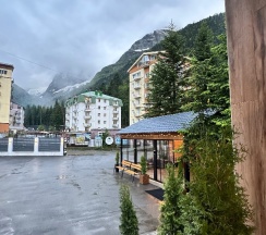 Кажется самый лучший отель и тем более официальный в Домбае, где можно оплатить картой, перечислением, так же получить все необходимые документы командировочным или отчетные. В общем прекрасное, тихое расположение. Завтрак шикарный шведский стол. Очень вкусно, готовят с душой. Очень красивый, теплый, уютный и стильный номер. Парковка большая, чаны, барбекю зона, зелень и конечно же горы 🏔️